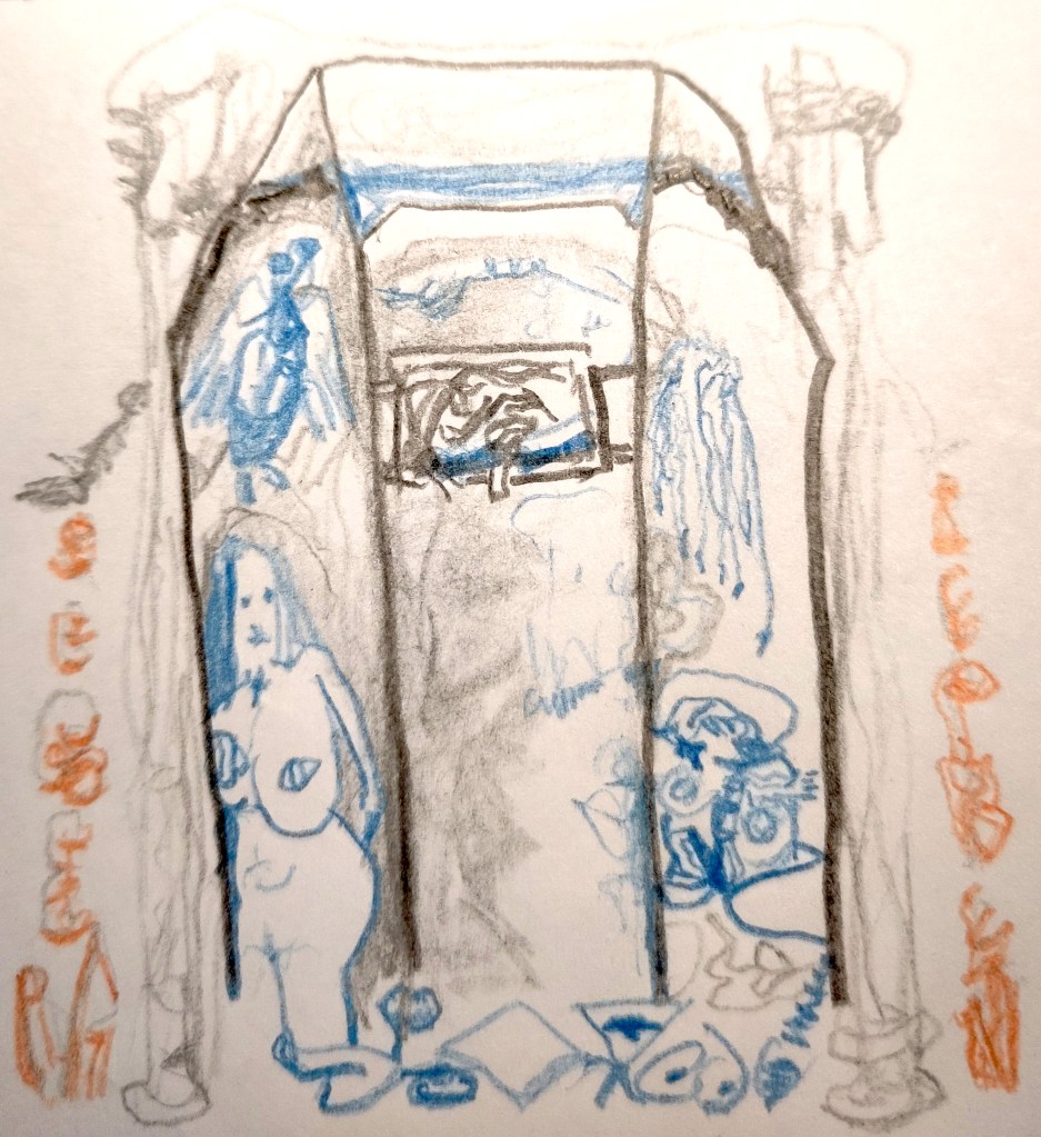 Traurig ist hier alles. Mein Rucksack? Sieht aus, als hätte er drei Nächte durchgefeiert und danach beschlossen, ein Dasein als trauernde Fledermaus zu führen. Erledigt, aber loyal. Halb offen, aber nicht die Kraft, etwas zu offenbaren. Innen sowieso leer. Hätte er eine Stimme, wäre sie dünn und niedergeschlagen oder dunkel, tief und monoton.