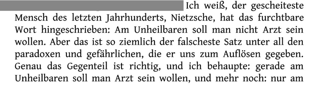 ** Nietzsche negiert auch und besonders das Mögliche, wie der Arzt Emmerich Kondor in Stefan Zweigs Roman „Ungeduld des Herzens“ ausführt: